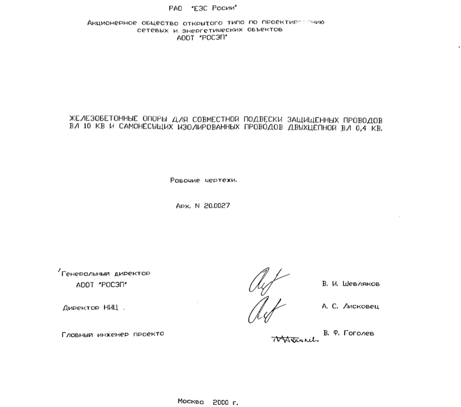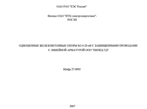 Проект одноцепнных железобетонных опор для ВЛ 6-20кВ с защищенными проводами